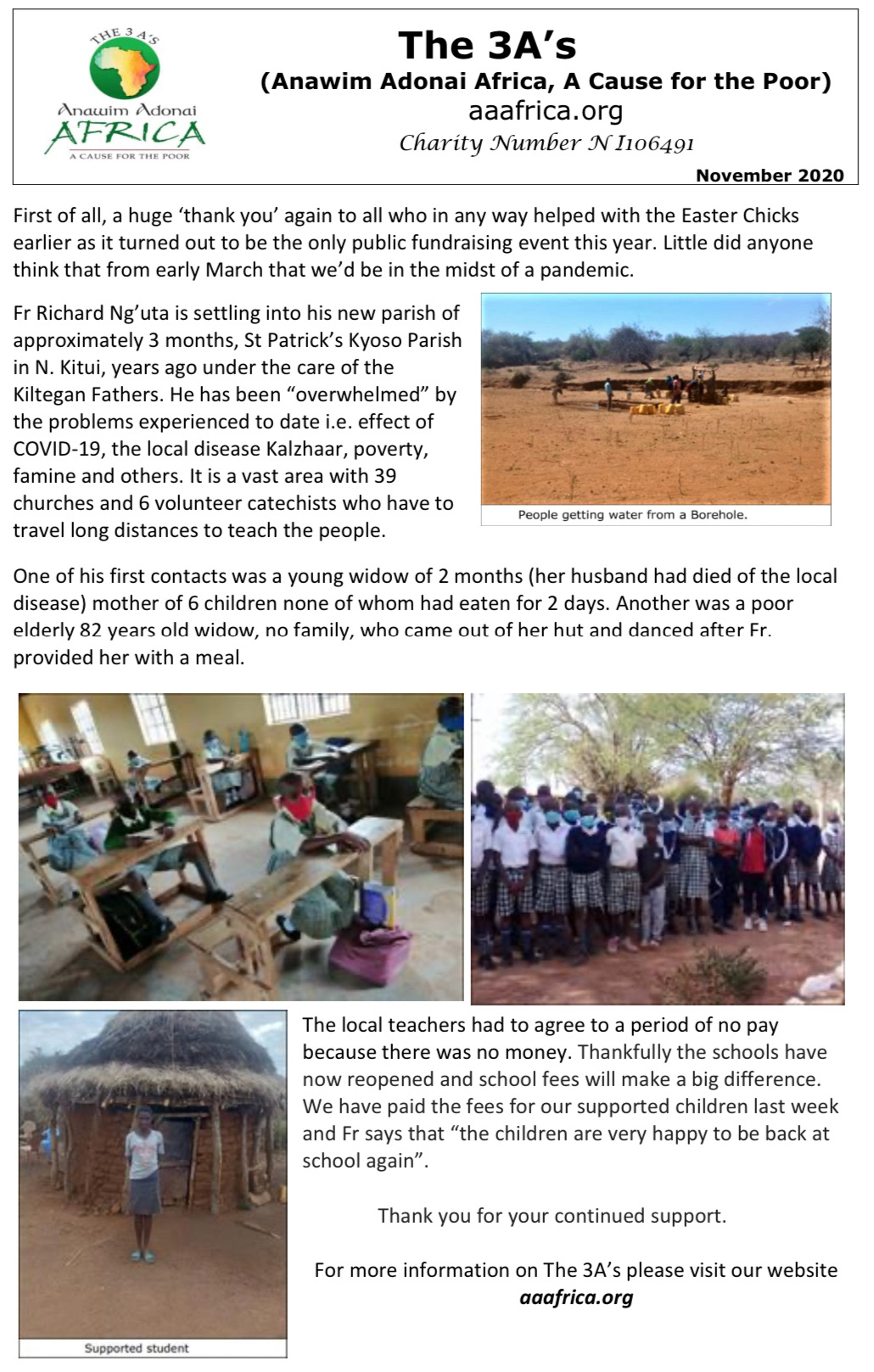 A chance meeting in Ederney, Co Fermanagh on the 6th November 2009 has blossomed slowly into the little “shrub” of our Charity, The 3A’s (Anawim Adonai Africa, A Cause for the Poor). There is still plenty of room for more growth.