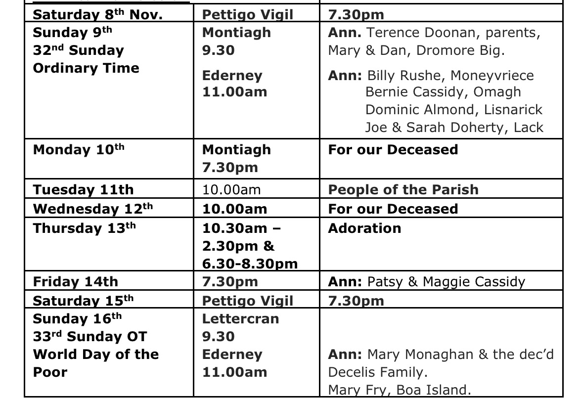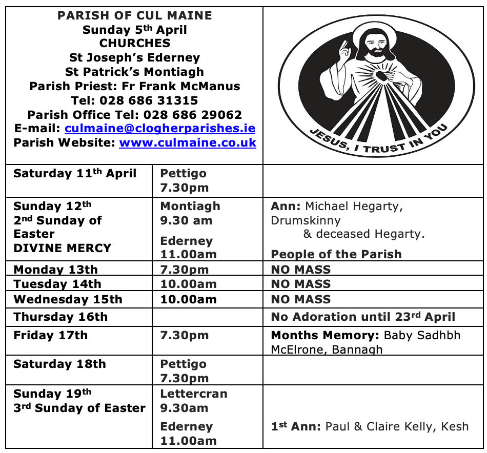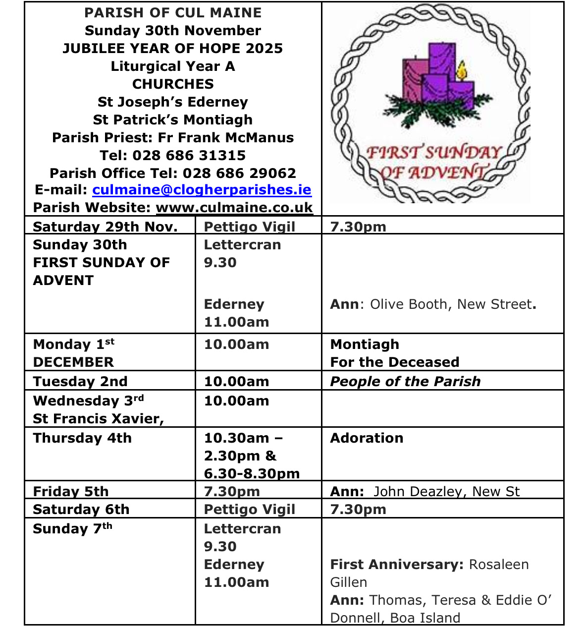 If you are unable to join us in person you can join in this week at the times outlined below on Livestream or listen on Parish Radio CB Channel 37 if you are local.