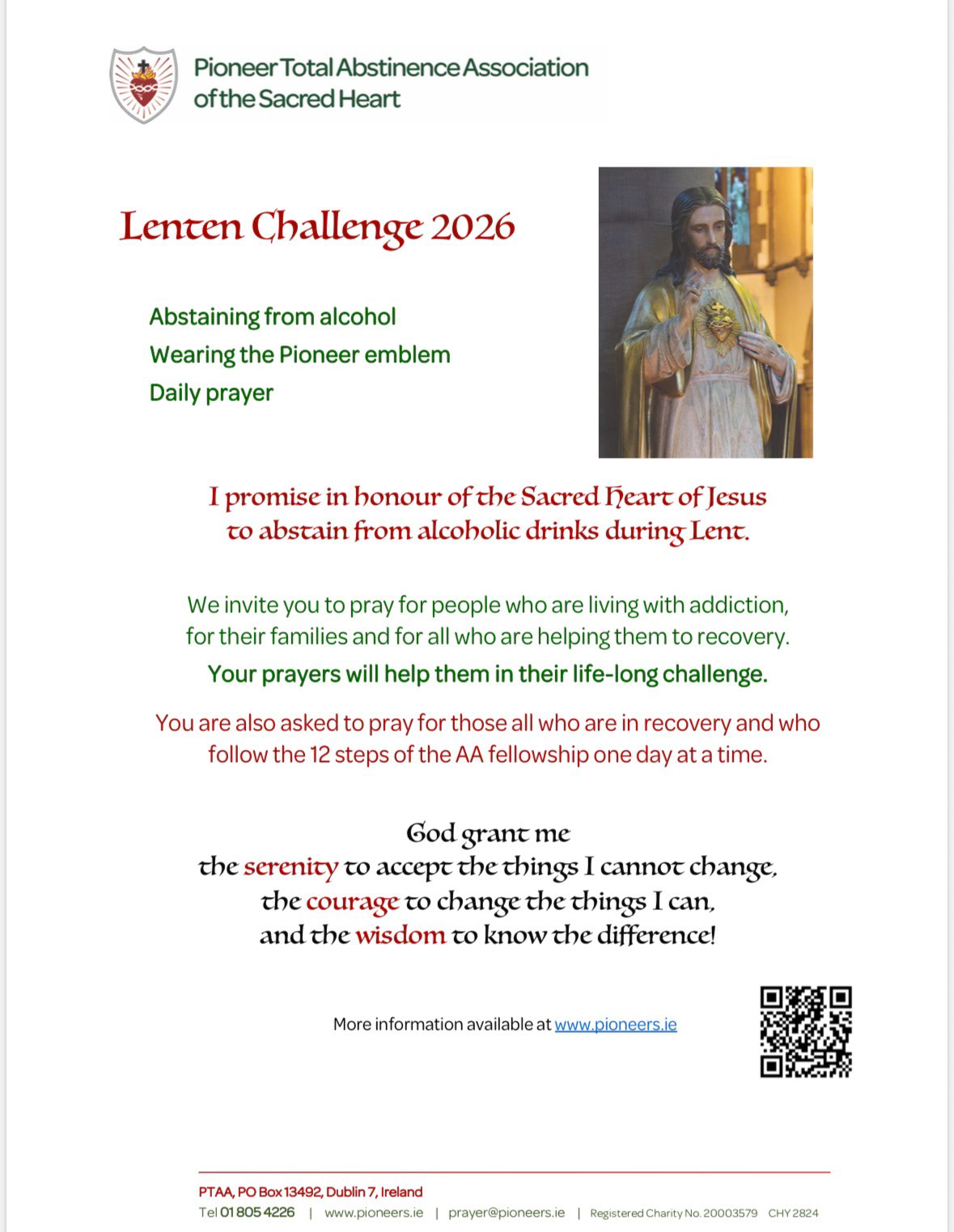 Parishioners who wish to take a short-term pledge for Lent are invited to visit www.pioneers.ie or to speak to a Pioneer in the parish.