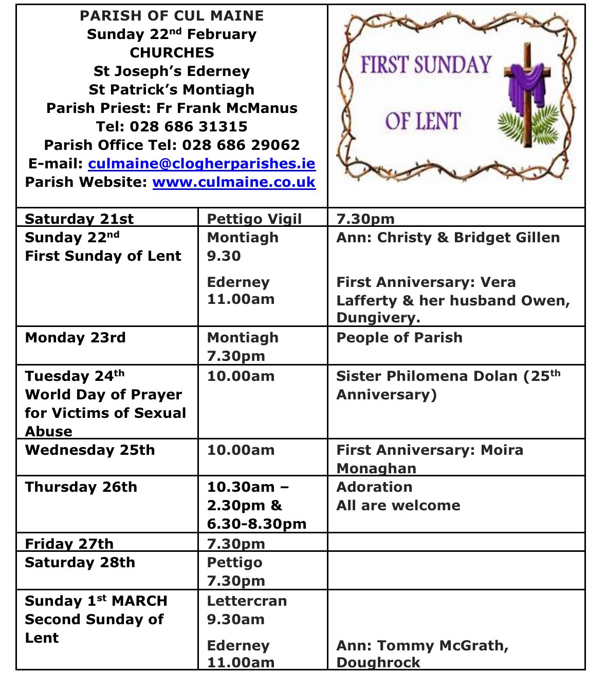 Fr Frank McManus PP Tel: 028 686 31315