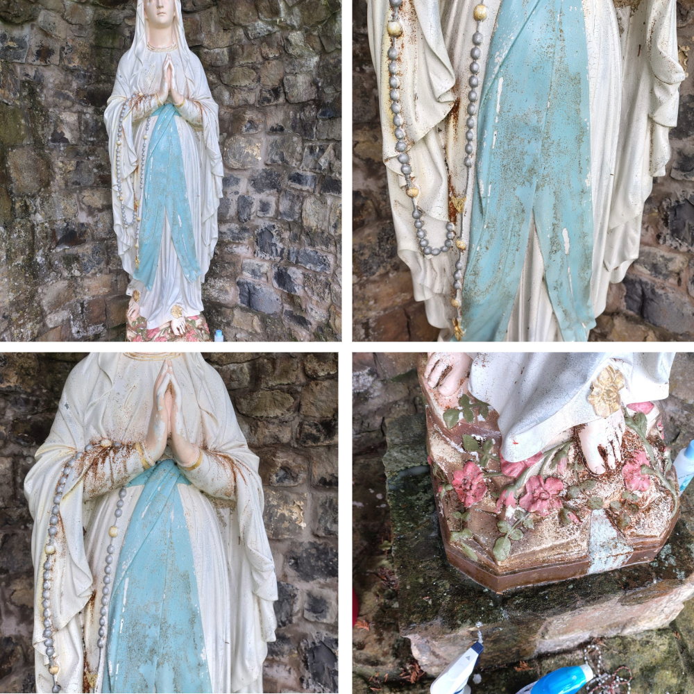 Restoration work: Over the past two weeks the Statue of our Lady in the Grotto at St Joseph’s has been restored and painted. A big thank you to Eileen Montague & Ann McFarland who carried out the work.
