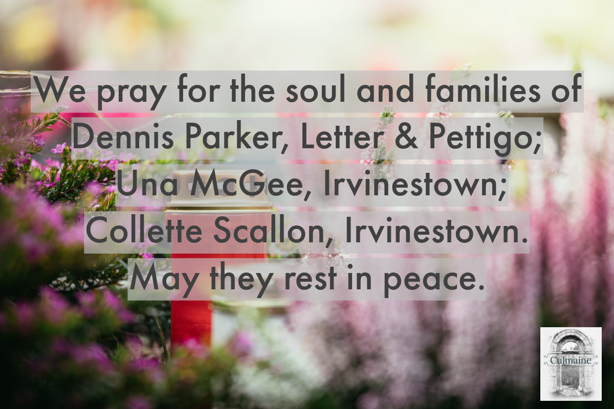 DEVOTIONS: ROSARY AND DIVINE MERCY CHAPLET: Each evening in St Joseph’s Church, Ederney: Sunday – Friday 6.30pm and on Saturday at 5pm. Everyone is welcome.